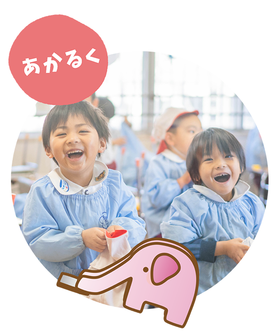 先生、お友だちの愛情あふれる中で、心の豊かな、あかるい子どもを育てます。