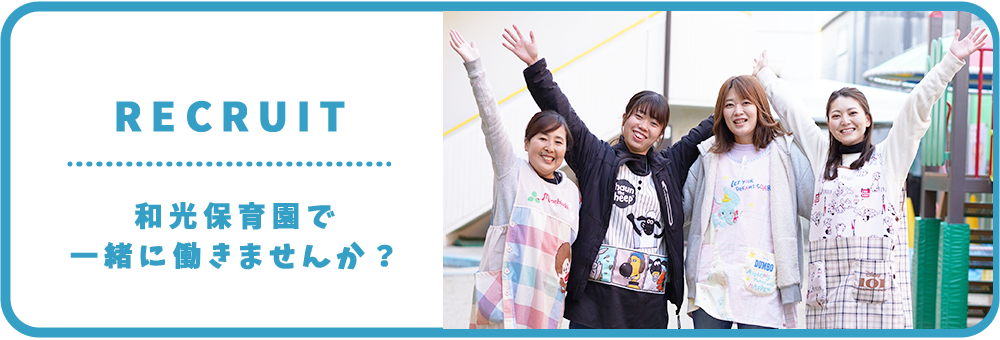 和光保育園は、昭和54年に開設以来、地元の皆様からあたたかいご支援をいただきながら続いている伝統ある保育園です。時代は流れても保育園は子供たちにとっては今も変わる事のない場所だと私は思っています。初めて保護者から離れてお友達との時間を過ごすという経験は、今後の子ども達の未来に大きく影響するでしょう。今、和光保育園で、子供たちに寄り添う素敵な先生たちの中には、和光保育園の卒園児も複数名在籍しています。このように和光保育園は卒園児が先生になり、そしてその先生の愛情を一杯受けた園児たちが、また先生になる、ということも現実になっています。