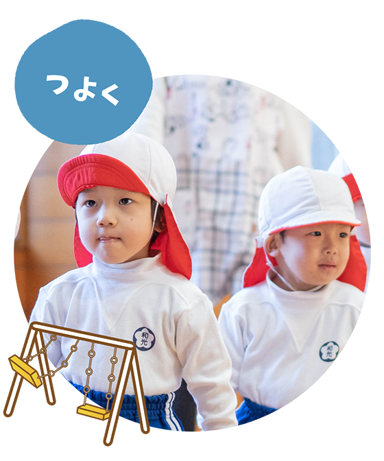 あそびの中で身体を動かす楽しさを知ってもらい、たくましく、つよい子どもを育てます。
