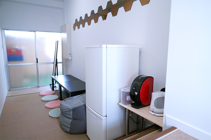 和光こども園で働く職員の方の憩いの場として、「和光サロン」を設置しています。「和光サロン」には冷蔵庫やポットなどもあって、ゆっくり快適に休憩していただけます。(女性専用です。)